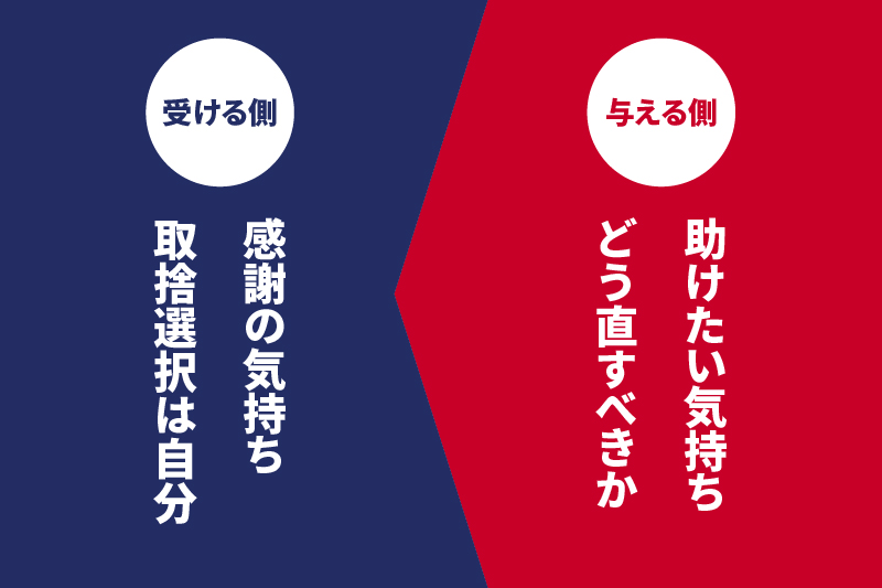 受ける側にとって大切なことは「感謝の気持ちを持つこと」と「受け入れるかは自分で決めること」です。