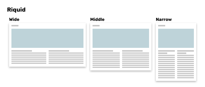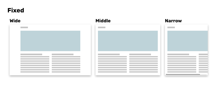 リキッドレイアウトと固定レイアウトの特徴を併せ持った手法です。ある一定の幅までは伸縮性を持たせる一方で、レイアウトが崩れてしまうような極端に狭い/広い幅に対しては固定幅で対応することで、閲覧環境の変化に対応します。