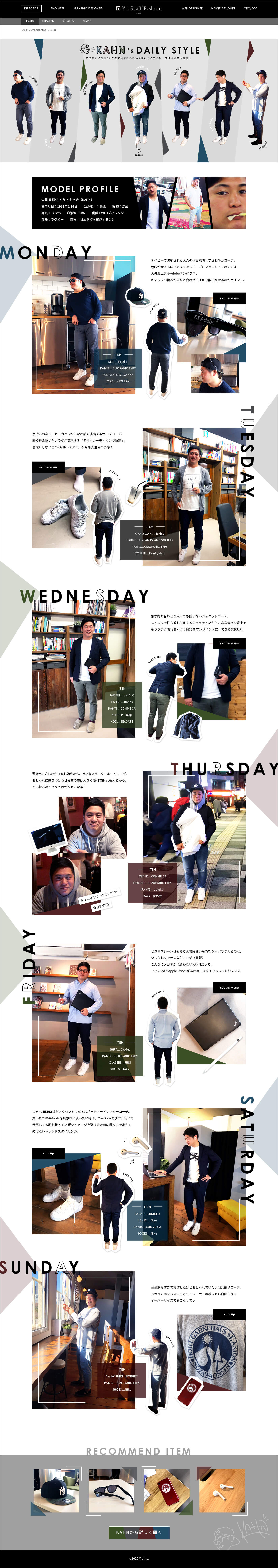 弊社WebディレクターKAHN(佐藤 智彰)の1週間コーディネートを、ECサイトのLP風にまとめてみました。