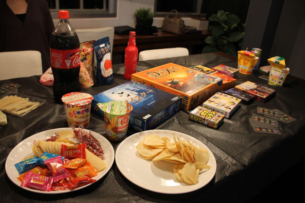 この日も定時後はボードゲームカフェに早変わりです。各々がお菓子やお酒を持ち寄って、19時過ぎからゆる〜く始まりました。